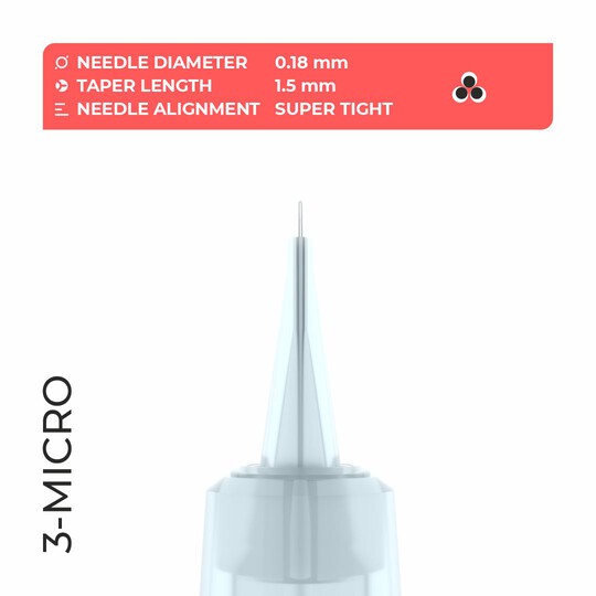 All our PMU needle cartridges are equipped with a safety membrane to prevent the backflow of colours and bodily fluids entering the machine and the associated cross-contamination